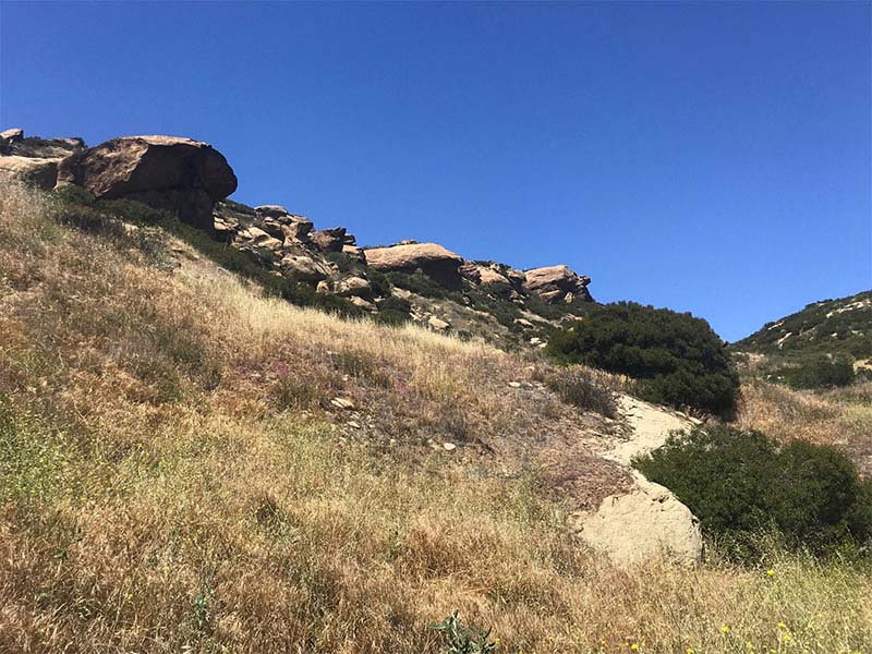 This 2.3 mile trail extends along and across Hummingbird creek and climbs through gorgeous sandstone rock formations gaining over 1,000 feet in elevation. The trail intersects the Rocky Peak Fire Road where the hiker can choose to turn around, rest at a bench, or continue up the road for an extra 1.7 miles. This hike is on the steep side so bring plenty of water and take breaks when needed! Great for mountain biking and hikers with some experience. The trail in maintained by the Rancho Simi Trailblazers and is patrolled by the Volunteer Trail Safety Patrol, groups of the Rancho Simi Recreation and Park District.